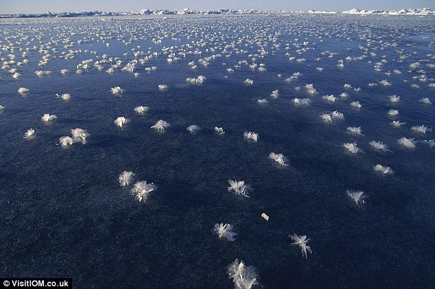 当冰与空气温度相差巨大时,寒冷的湖面或海面会形成美妙的冰花。