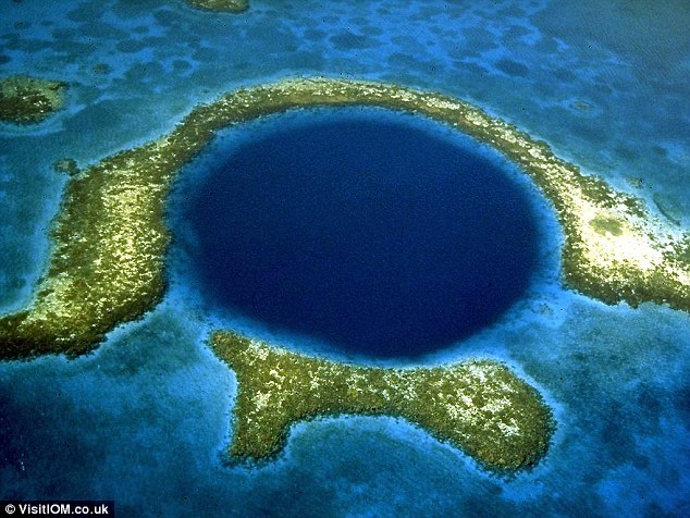 伯利兹的大蓝洞是一个巨大的圆形岩洞,美丽的圆形洞口四周由两条珊瑚暗礁环抱着。伯利兹大蓝洞,直径长达984英尺(约合300米),深407英尺(约合124米),是游客最爱的潜水胜地。