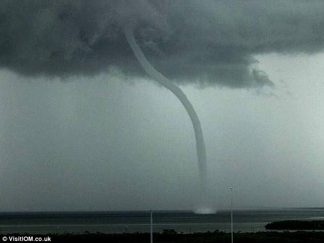 雷电交加的暴风雨中,狂野的龙卷风带来海上水龙卷。