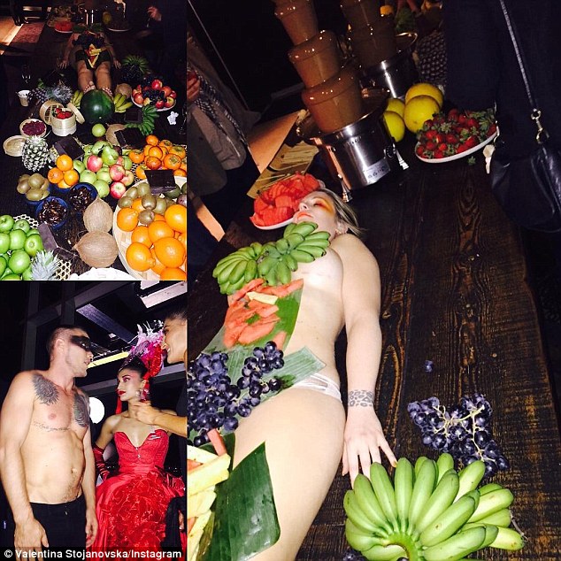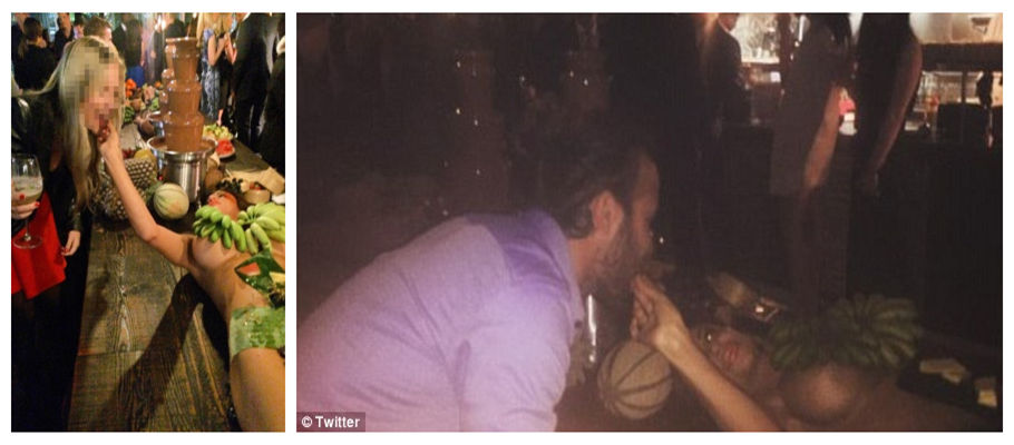 这些模特除了肉色内裤外几乎衣不蔽体。为了炒热现场气氛,她们甚至亲手喂客人们吃身上的食物。