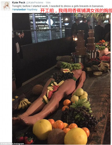 据英国《每日邮报》报道,“游艇酒吧”位于悉尼游人如织的环形码头外国乘客出入站附近。这家酒吧在举办重新开业宴会时,雇佣女模特躶体躺在餐桌上充当食物托盘,遍身铺满各种食物。