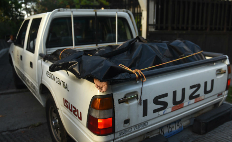 据统计,萨尔瓦多各类黑帮总人数大约为7.2万人,其中1.3万在坐牢。警方19日说,全国过去3天至少发生125起凶杀案。政府数据显示,今年1月至6月,全国共发生3332起凶杀案,比去年同期增加1100多起。图为法医研究所的人员运输监狱囚犯的尸体。