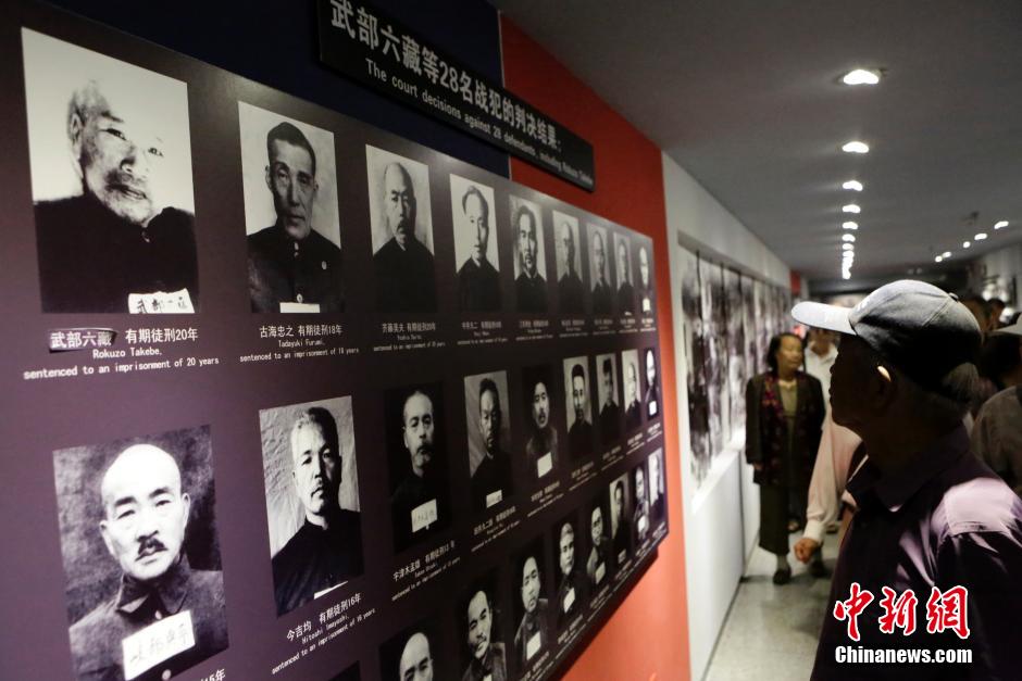 8月27日,武部六藏等28名日本战犯的判决结果吸引参观民众。抗战胜利70周年纪念日到来在即,中国(沈阳)审判日本战犯特别军事法庭旧址陈列馆内迎来民众参观热潮。1956年6月9日,最高人民法院特别军事法庭在此正式开庭,对包括日本前陆军中将师团长铃木启久、伪满洲国国务院总务长官武部六藏在内的36名战犯进行审判。据了解,陈列馆内的整个展区面积达到1100多平方米,重点展示日本投降后到被审判,直至当年战犯被人民政府从“鬼”改造成“人”,回国后组建“中国归还者联络会”的历史主线。历史陈列主要以文字、图表、照片、史料、文物、音像、多媒体演示等展览形式,全面反映这次正义的审判。 中新社发 李慧思 摄
