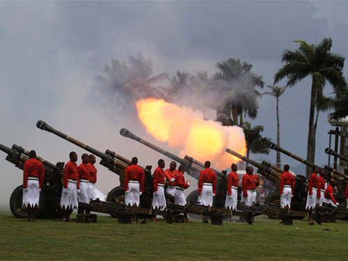另外,根据斐济传统文化,身穿礼服的仪仗队是一定不能戴帽子的。这可能是参照了进入斐济村庄时的规矩。在这个太平洋岛国,人的头部是神圣的,进村时如果客人戴帽子,那就是对村里的酋长不敬。