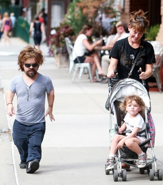 这次不是演出,而是彼特·丁拉基的真实生活。星期四,作为家中的男人,他陪妻子埃里卡·施密特和他们四岁的女儿泽里格在纽约散步。