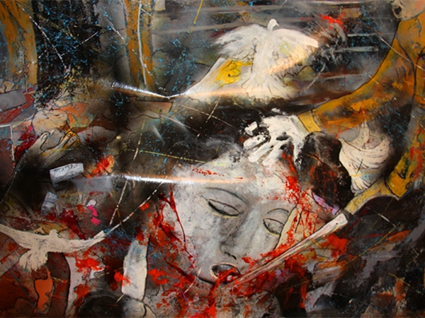 如同新生命的诞生,阵痛过后,是新生。画作《解脱》终于问世了,这是他30年绘画生涯中创作的最大一幅油画,他要把这幅画无偿赠送给侵华日军南京大屠杀遇难同胞纪念馆。
