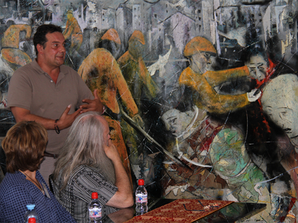 提起为什么两年前产生了创作这一作品的冲动,他说,从2009年开始,他几乎每年都去中国作画,但直到两年前,他才知道历史上发生过南京大屠杀。一次,他同中国朋友从天津赴杭州经过南京,那位朋友对他说:“知道吗?70多年前,在这座城市里,日本人曾在6周里杀害了30万中国平民。“