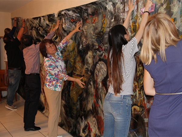 克里斯蒂娜告诉记者,创作这幅画时,帕赫不仅常常长时间地把自己关在画室里,而且还不时走到院子里大口地喘气,他太需要新鲜空气了,那段惨绝人寰的历史让他窒息。对他这样一个天性快乐、热情奔放的人,表现这样的主题,着实太过沉重。“他在挣扎,我们全家都和他一起感到了阵痛。”