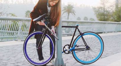 这款防盗自行车的巧妙之处是自行车本身就能成为一把天然的大锁。“尤科”的车身支架是部分可拆卸的,向外翻折后,就可变成固定支架。而车座杆也可以拔出来,用固定支架将其固定后,再插进底下的锁孔,就成了一把天然的锁。当“尤科”同路边如树木、街灯、自行车停放架这样不可移动的物体锁在一起后,它就给小偷们出了一个大难题。如果小偷还想偷车的话,就只能先把这辆自行车彻底破坏,但这样一来,偷车也就成了件没有意义的事。为防止小偷偷车不成改偷轮子,设计者们还在轮子上安装了特殊防盗装置,没有专用钥匙别想弄走。