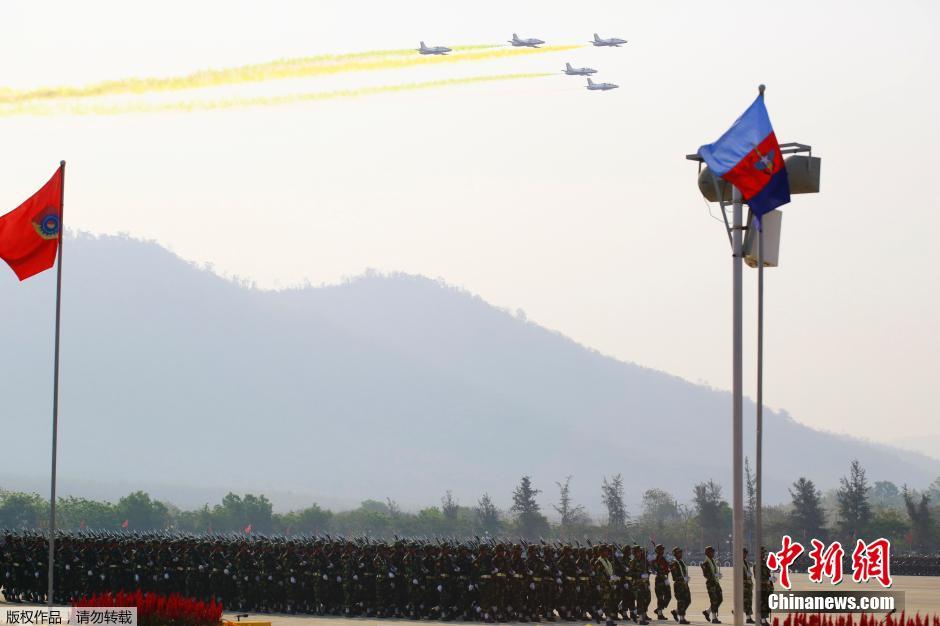 当地时间2014年3月27日,缅甸在奈比多举行阅兵式庆祝建军69周年。