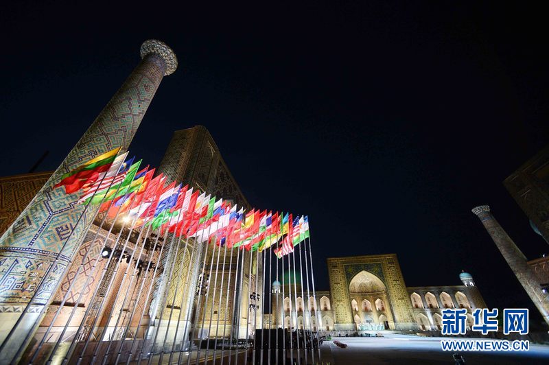 新华网塔什干8月29日电(记者沙达提)第十届“东方旋律”国际音乐节28晚在乌兹别克斯坦第二大城市撒马尔罕列吉斯坦广场建筑群隆重开幕,乌总统卡里莫夫以及联合国教科文组织高级官员等出席开幕式。新华社记者沙达提摄