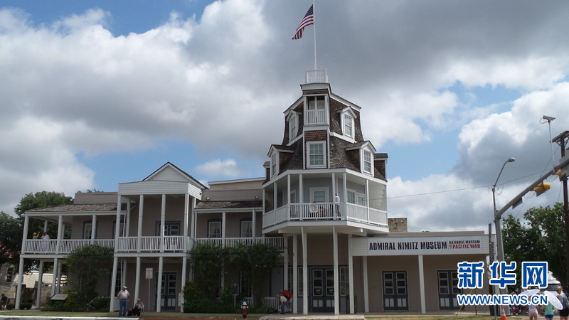 成立于1967年的美国太平洋战争国家博物馆位于得克萨斯州中部弗雷德里克斯堡市的一个旧旅馆中,占地面积2.4万平方米,是为了纪念二战时在太平洋战争中为了和平而牺牲的战士而建立的,同时也是美国境内唯一的全面介绍太平洋战争的博物馆。近日,新华社记者专程到访这家博物馆。放眼望去,在弗雷德里克斯堡市主街上的这家顶端飘着美国星条旗的博物馆十分显眼,正像其此前的绰号“汽艇”一样,它像一艘巨舰,正在驶向和平的彼岸。在其与博物馆其他建筑的傍边,竖立着一尊身着戎装的二战时美国海军太平洋舰队总司令尼米兹将军的铜像。