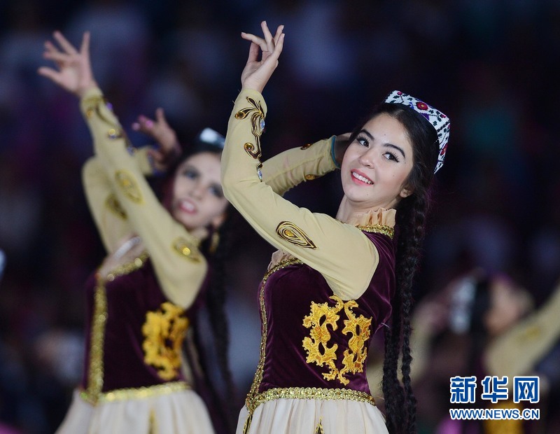 8月31日,演员在乌兹别克斯坦首都塔什干举行的独立日庆祝活动上表演。当日,乌兹别克斯坦在首都塔什干的阿利西尔·纳沃伊公园举行文艺演出,庆祝乌兹别克斯坦独立24周年,数千人出席庆典。新华社记者 沙达提摄
