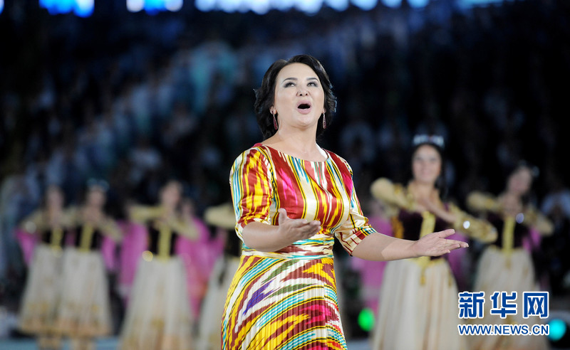 8月31日,演员在乌兹别克斯坦首都塔什干举行的独立日庆祝活动上表演。当日,乌兹别克斯坦在首都塔什干的阿利西尔·纳沃伊公园举行文艺演出,庆祝乌兹别克斯坦独立24周年,数千人出席庆典。新华社记者 沙达提摄