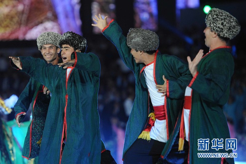 8月31日,演员在乌兹别克斯坦首都塔什干举行的独立日庆祝活动上表演。当日,乌兹别克斯坦在首都塔什干的阿利西尔·纳沃伊公园举行文艺演出,庆祝乌兹别克斯坦独立24周年,数千人出席庆典。新华社记者 沙达提摄