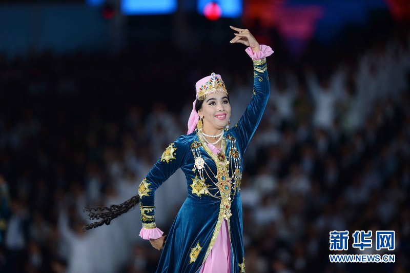 8月31日,演员在乌兹别克斯坦首都塔什干举行的独立日庆祝活动上表演。当日,乌兹别克斯坦在首都塔什干的阿利西尔·纳沃伊公园举行文艺演出,庆祝乌兹别克斯坦独立24周年,数千人出席庆典。新华社记者 沙达提摄