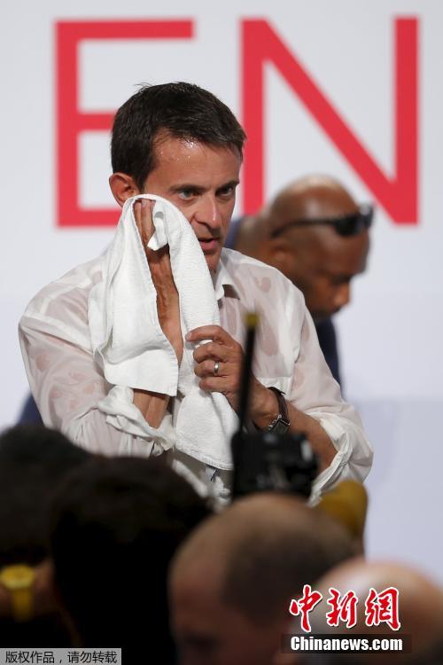 法国总理演讲汗流不止 白色衬衫被全部浸透(高清组图)