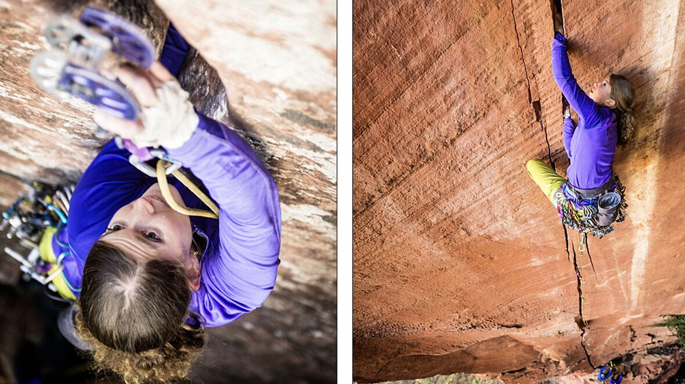 她在攀爬其中一条路线。(网页截图)
