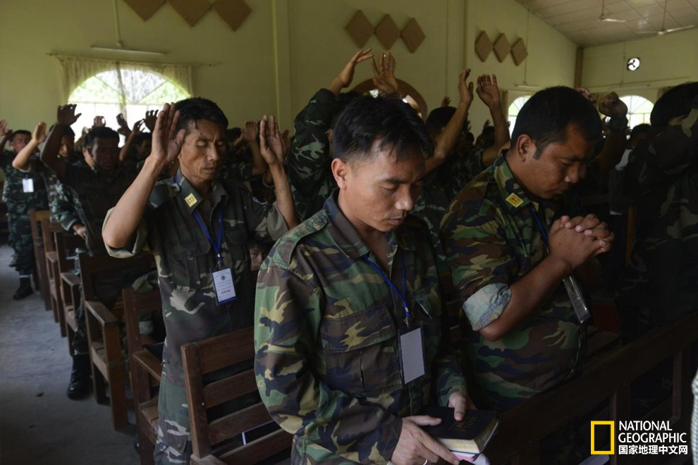 受外来基督信仰的驱动,在浸信会的一次宗教仪式中,来自印度最大的那加造反派(那加民族社会主义委员会中的伊萨克—穆瓦哈派系)的士兵正在祈祷。