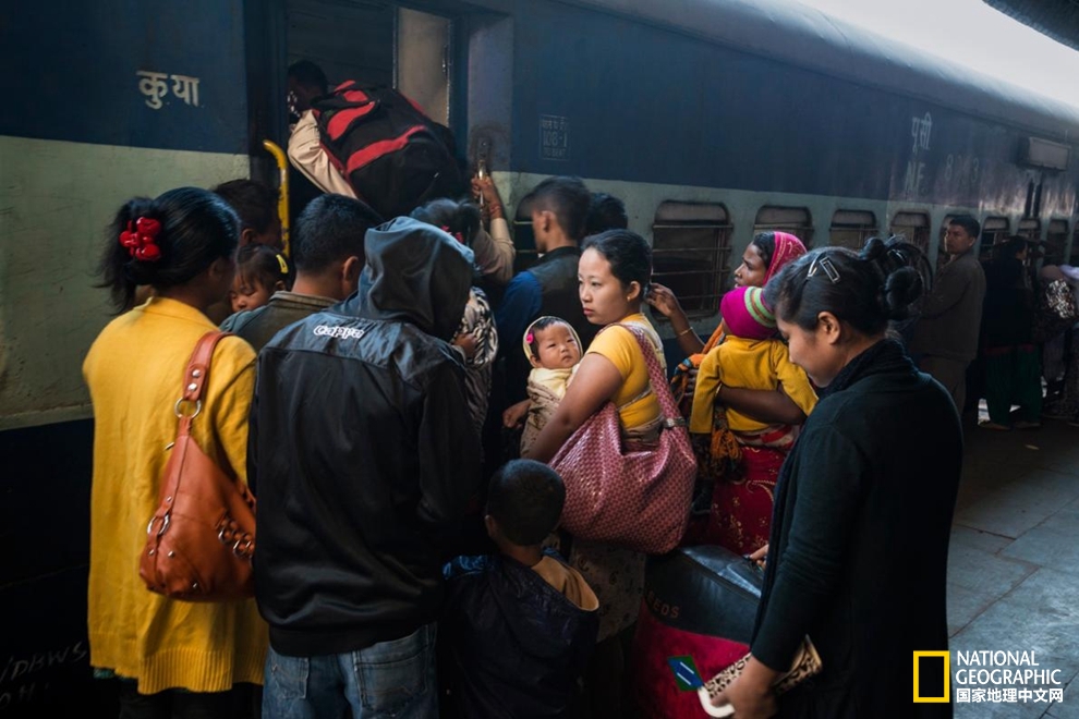 在那加兰邦的最大城市迪马普尔,大量乘客蜂拥挤上火车。这个火车站是那加兰邦唯一的火车站,是通向印度其他地区的主要通道。
