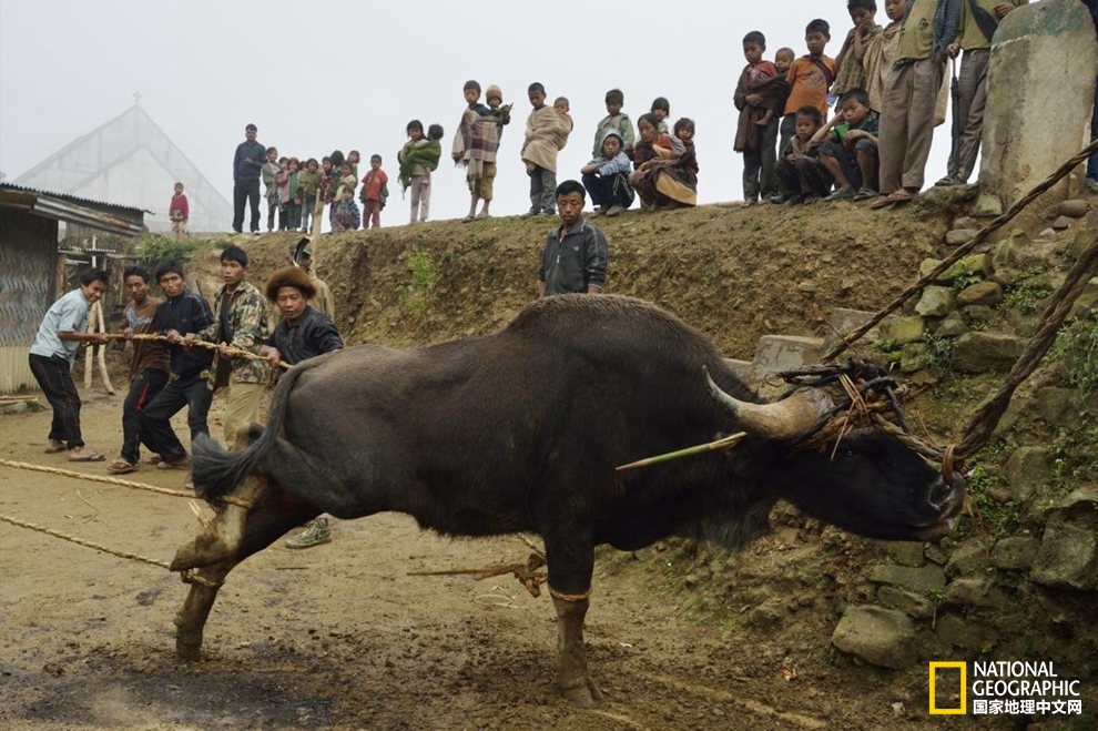 在完成浸信会的祈祷仪式后,村民会杀死一头象征繁荣的牛来庆祝一个男孩的一岁生日。