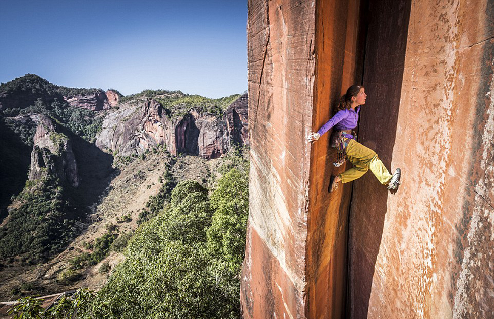 瑞士女教师徒手攀爬云南峭壁 惊心动魄(高清组图)