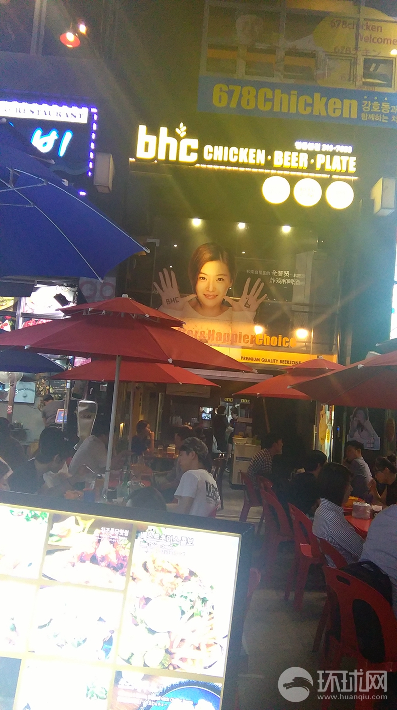 韩国首尔市政厅在8月26日-29日期间组织了包括中国大陆、香港、台湾地区以及新加坡和马来西亚的多家媒体到首尔进行考察。图为首尔繁华的明洞地区全智贤做广告的炸鸡店。