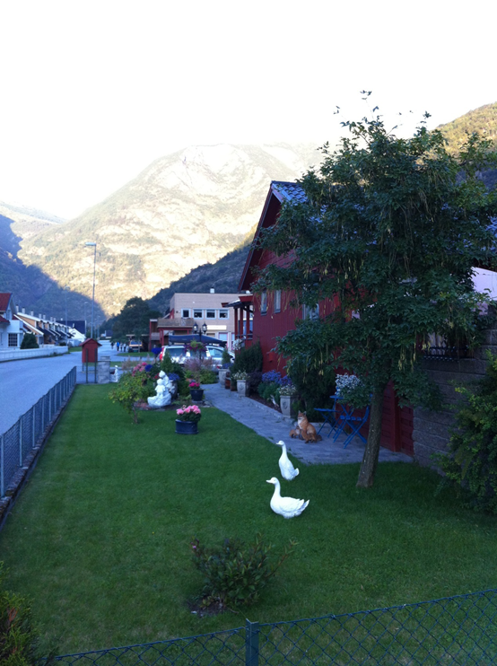 我们乘车穿过一条24公里长的隧道,来到一个名叫莱达尔的小镇,小镇四面环山,如同世外桃源,空气清新,沁人肺腑,房屋建筑十分漂亮,许多房前都有花园式的庭落,繁花似锦。整个小镇环境宜人,清洁安静。除了游客之外,几乎看不到什么人。抵达小镇时已是下午近5点钟,虽然太阳还很高,但大部分商店都关门了。我在一个服装店门前停了下来,牌子上写着:周一至周五,开门时间上午十点,关门时间下午四点;周六和周日,开门时间上午十点,关门时间下午二点。挪威人的悠闲生活态度可见一斑。