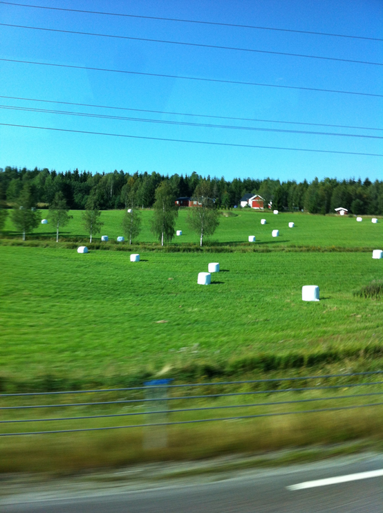 北欧四国乡村,到处都是森林,覆盖面积达到整个地区的60%。我们所经过的乡村,房舍多数都是用木头建造的,非常漂亮,如同安徒生童话故事中的房屋一样。乡村农户非常分散,除了小镇之外,一般都是一户一处,至多一处二、三户房屋,房屋周围都是顺地势而种的农田或草坪,高低起伏不平。没有收割的麦田一片金黄色,紧临的就是一片绿绿葱葱的草坪。农户收割小麦和绿草之后,随即把麦秸和草打成捆,然后用白色的塑料布裹紧。我们在乡村公路经过的地方,随时都能看到田地里码放的白色捆包,十分干净利索。据了解,被打成捆的草卖给养牛场作冬饲料,麦秸用于造纸。