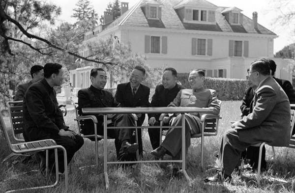 ↑图左二为周恩来,左四为王炳南(新华社发)。