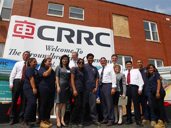 图为3日在美国马萨诸塞州斯普林菲尔德市,出席中国中车在美制造基地奠基仪式的嘉宾合影。
