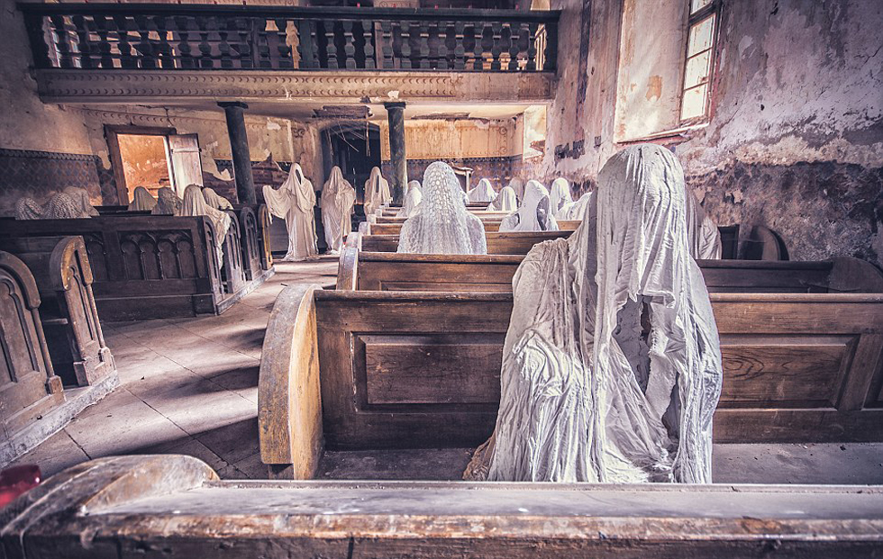 米卡的摄影集名为Urbex,即城市探险,主要以废弃矿场、工厂和医院为拍摄目标。米卡希望通过回顾这些被遗忘的建筑外貌,发现其甚少被人欣赏到的美丽。 米卡拍摄到的最令人印象深刻的照片就是位于捷克共和国鲁科瓦(Lukova)的14世纪圣乔治教堂,里面有许多戴着帽子的幽灵雕像坐在凳子上或站在走廊中。米卡解释称,这些雕塑是一位艺术家安放在这里的,旨在使该教堂免遭关门的厄运。这些怪异雕塑吸引很多人参观,所得收入用于教堂的修缮工作。