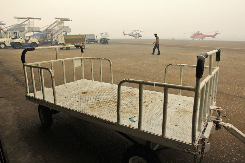 当地时间2015年,9月5日,印尼,廖内省。印尼军队在灭火。每年的旱季,焚烧毁林经常在Sumatra and Kalimantan岛发生。毁坏了森林的土地为纸浆,造纸以及棕榈油公司所利用。森林大火造成的烟雾影响到临近的新加坡和马来西亚。(图片来源:美联社)