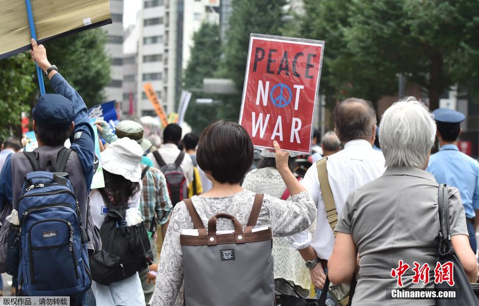 日本示威者游行抗议安保法案