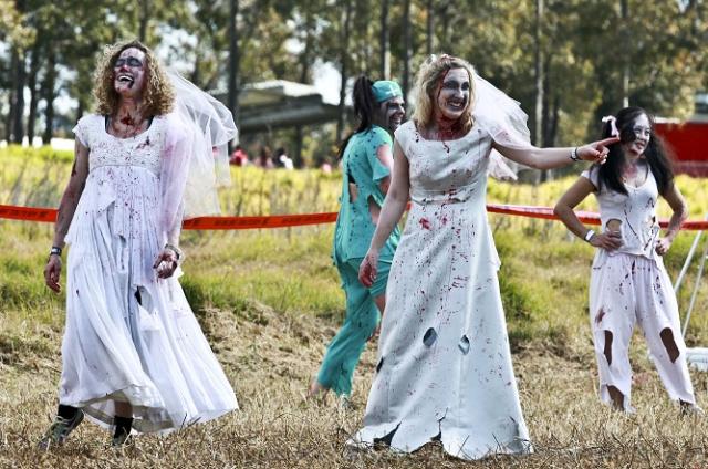 “丧尸”们参加“僵尸跑”活动。