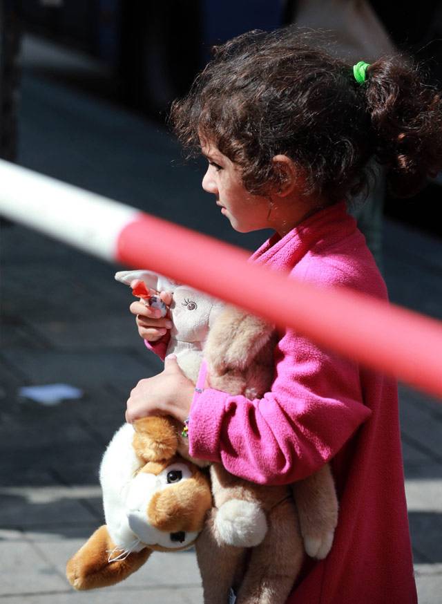 与逃难中丧生土耳其南部海滩的3岁叙利亚幼童小艾兰相比,这些孩子是幸运的。他们活着来到了这里,下了火车,还有人给他们送吃的,还有玩具。他们要随大人前往附近的难民临时安置点,或再登上火车前往德国其他地方。