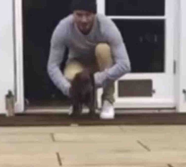 视频显示,前足球明星小贝放开小狗后,它一下子跳到了空中,它跳的很高,看起来就像飞起来了一样。