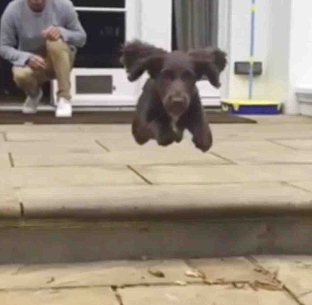 飞:“看小Olive飞起来了!!她的耳朵多么可爱啊?!?”维多利亚为这段慢动作视频加的字幕写道