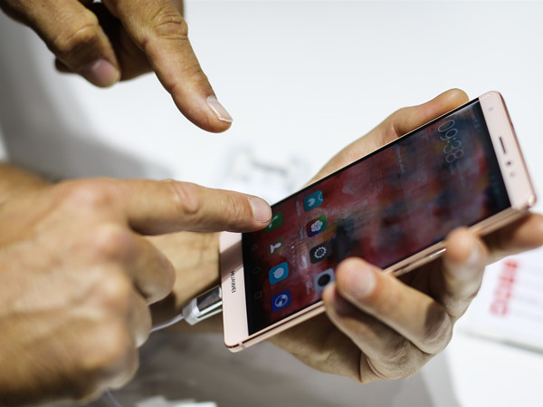 (图为与会者在华为公司展台查看华为Mate S智能手机,新华社记者张帆摄)