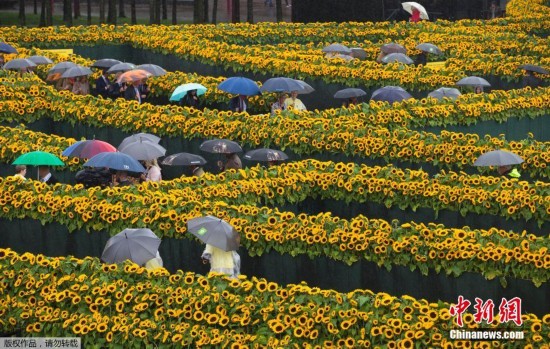 当地时间2015年9月6日,荷兰阿姆斯特丹,12.5万株向日葵搭建向日葵迷宫,引游客到访。