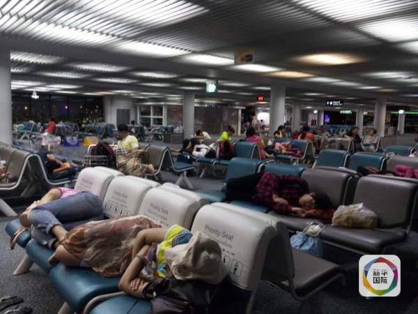 图为部分拒绝前往酒店休息的乘客在候机厅内过夜(图片由当事人提供)