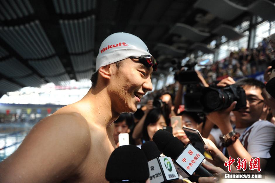 9月7日,宁泽涛在赛后接受记者采访时表示,对预赛的结果很满意,会全力以赴参加当晚的决赛。当日,在2015全国游泳锦标赛男子50米蝶泳预赛中,海军队宁泽涛以24秒75的成绩晋级该项目决赛。 中新社发 韩苏原 摄