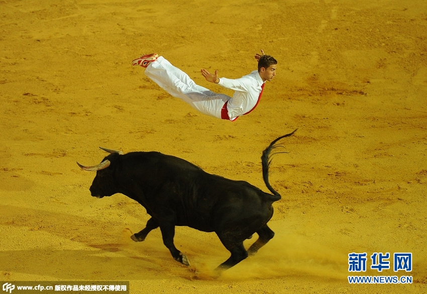 西班牙斗牛士空中翻跟头 玩出新高度(高清组图)