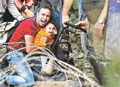 近日,马其顿边境的难民与警察发生冲突 供图/IC