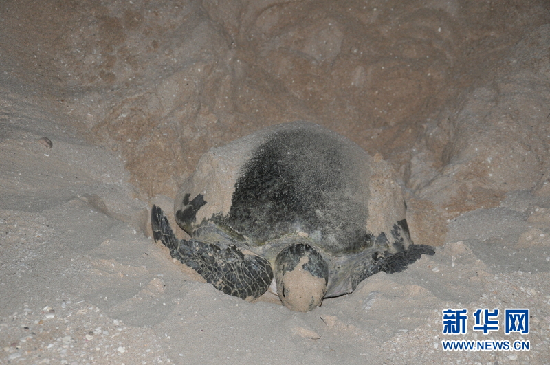 正在海滩产卵的绿海龟。新华社记者孙磊 摄