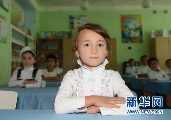 9月8日,乌兹别克斯坦纳曼干州琶布市恰达克镇偶丁亢村第29学校,学生在新课桌椅上上课。