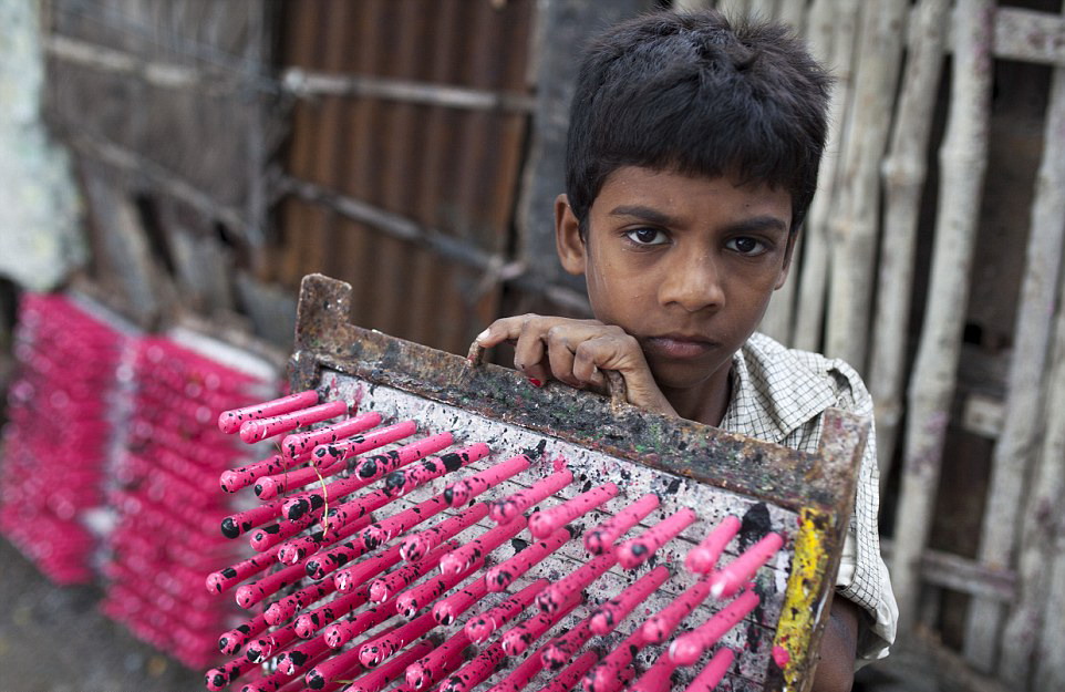 这些孩子从早上6点开始工作,一直持续11个小时,在下午5点下班。这份繁琐、艰苦的工作能为他们带来每月6.5英镑(约合人民币64元)的收入。经验丰富的孩子收入会高一些,然而最高也仅有16英镑(约合人民币157元)。