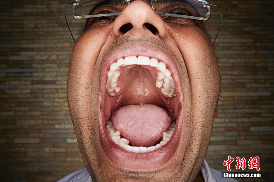 你很难想象,一个人的口中居然长出37颗牙齿!来自印度的27岁小伙Vijay Kumar V.A就是这样不普通的一个人。 一般人的平均牙齿数量是32颗,他足足比普通人多出5颗牙齿,并因此成为【口中长最多牙齿】的纪录保持者。(吉尼斯世界纪录供图)
