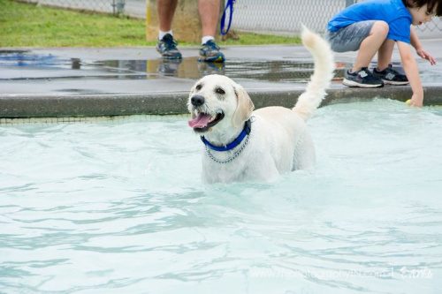 从9月9号到12号,每天下午,海因斯菲尔德泳池都会成为狗狗们的“专场”。这可乐坏了一众汪星人们。闷了一夏天,终于有机会解解暑了。看着他们撒着欢儿奔跑在泳池边,冲进泳池里,叼着玩具球玩得不亦乐乎,狗主人们也觉得这区区3刀花得真是物超所值。