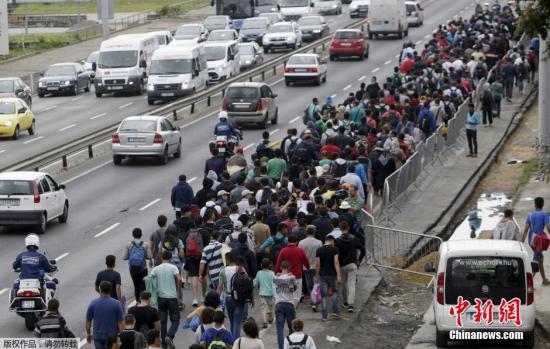 约4千名移民当地时间9月5日早上通过匈奥边境进入奥地利,得到奥地利方面安置。